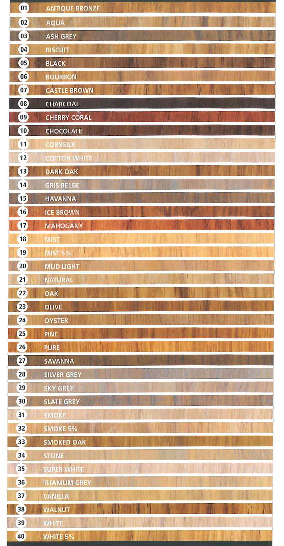 40 colores estándar. Mejora el aspecto y tacto natural de la madera. ¡0% COV!, no contiene ni agua ni solventes. Mantenimiento fácil. Sin superposiciones o marcas de inicio. Bajo consumo: 30 - 50 m²/L.